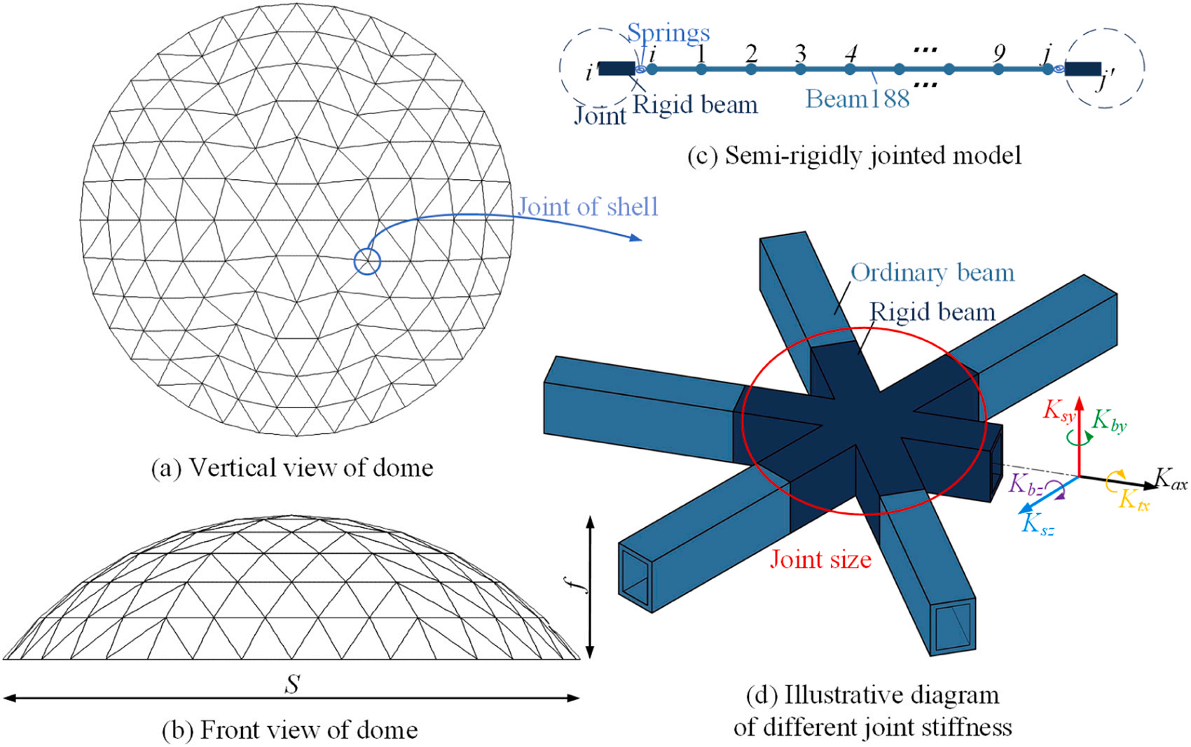 近日,水建学院李会军副教授课题组在工程领域学术期刊《Structures》发表了研究论文“Effect of joint behaviors on the load-carrying capacity of single-layer reticulated dome”。水建学院土木工程专业2021级本科生肖志成为第一作者,李会军副教授为通讯作者,土木21级本科生李韧、闫更旺等参与了研究工作。