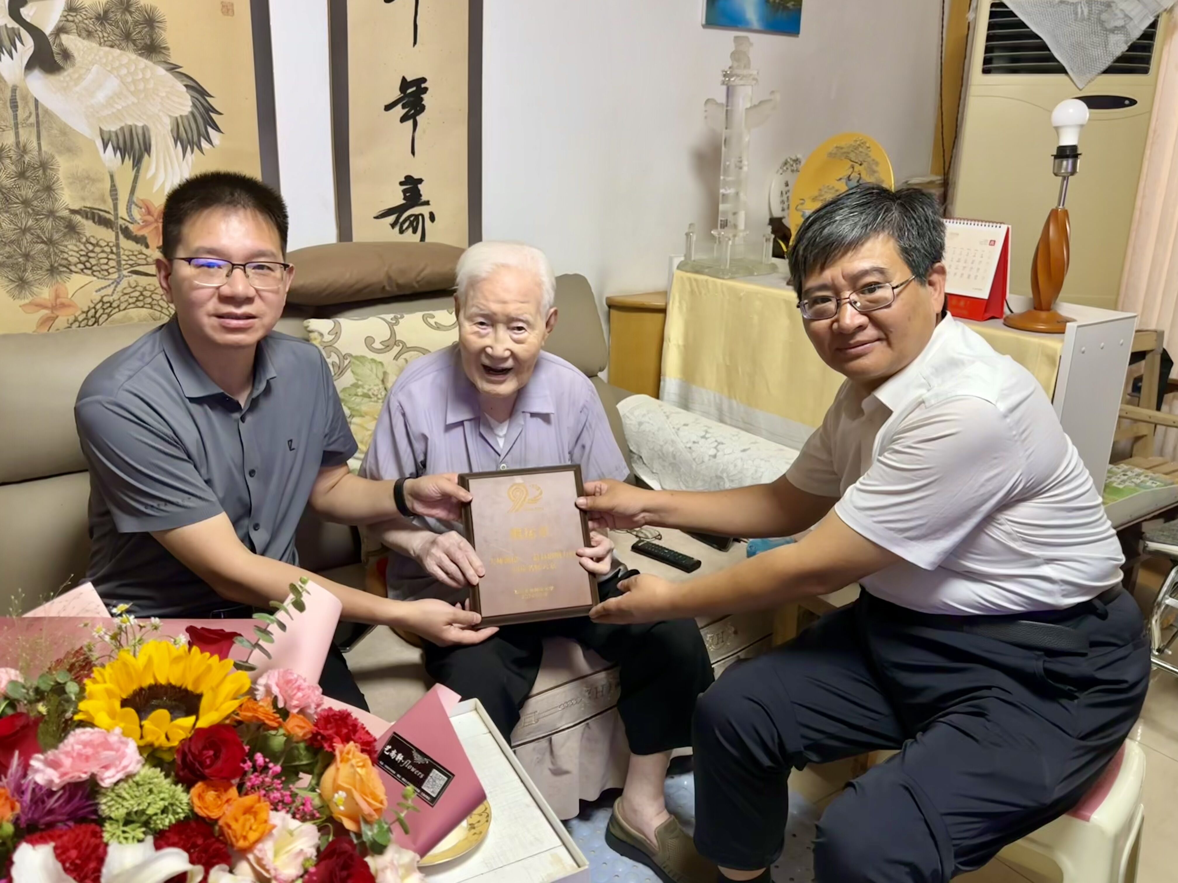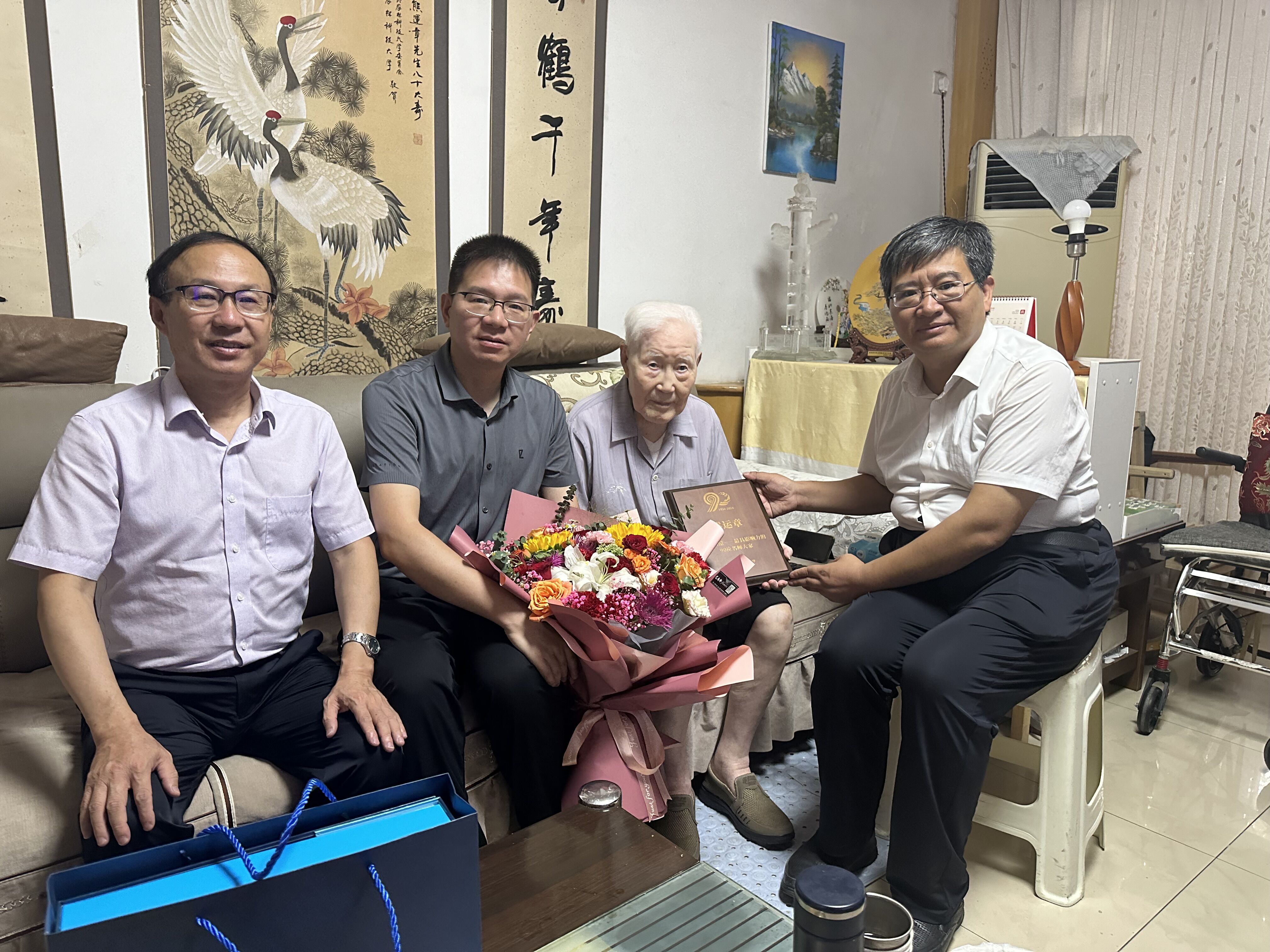9月9日上午,水建学院领导班子还看望慰问了黄金城官方网站102岁高龄的熊运章教授,向熊老汇报了学院荣获学校90年校庆杰出成果先进典型表彰的情况,并转达了学校领导的祝贺与问候。熊老对学院多年来事业发展取得的成绩表示肯定,对学校90周年校庆和建院90周年表示祝贺。