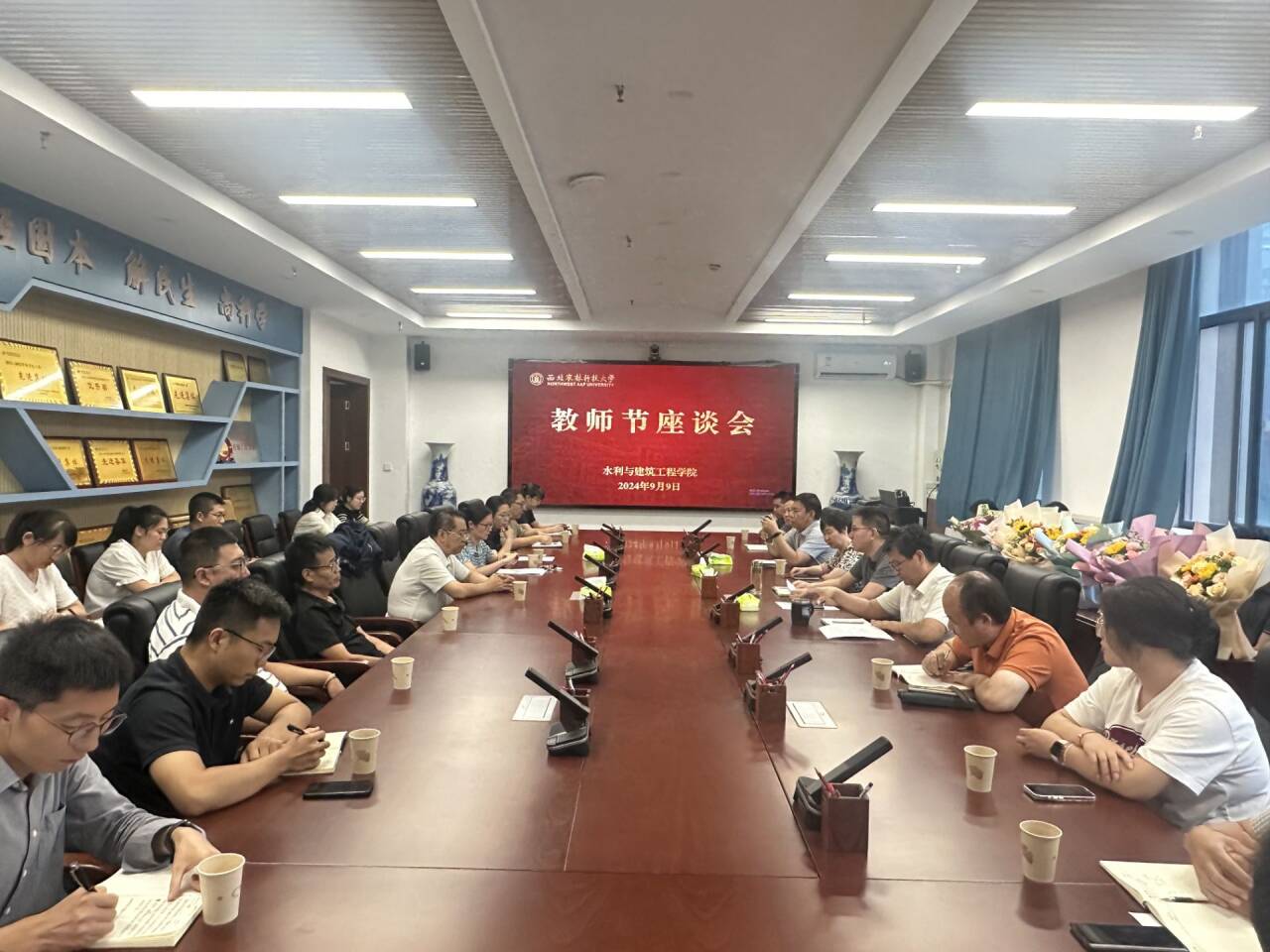 9月9日下午,水建学院召开庆祝第40个教师节座谈会。学院领导班子成员、受学校表彰教师代表和近三年新进年轻教师代表40余人参加会议,座谈会由学院党委书记郑伟主持。